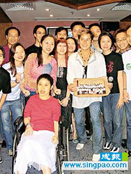 而席上有一名跟隨阿倫多年的女歌迷,由于她患了先天性痙攣,一班歌迷會成員平日都自發(fā)性照顧她,最近更與阿倫發(fā)起捐錢買一部電動輪椅給她,但這位歌迷堅(jiān)持自己也要出一份錢,此事令阿倫很感動。阿倫表示,這位歌迷的事件,正好告訴大家,凡事都有希望,只要抱樂觀心情,問題自會解決。