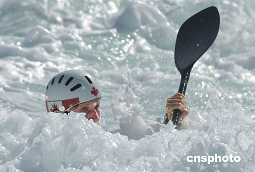 圖為希臘選手戴維-福德(David Ford)在男子單人皮艇比賽中的出色表現(xiàn)。