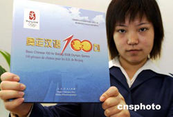 八月二十四日,教育部、中國(guó)國(guó)家對(duì)外漢語(yǔ)教學(xué)領(lǐng)導(dǎo)小組、第29屆奧林匹克運(yùn)動(dòng)會(huì)組織委員會(huì)在北京聯(lián)合舉辦《奧運(yùn)漢語(yǔ)100句》新聞發(fā)布會(huì)!秺W運(yùn)漢語(yǔ)100句》由北京奧組委、中國(guó)國(guó)家對(duì)外漢語(yǔ)教學(xué)領(lǐng)導(dǎo)小組辦公室合作編寫,人民教育出版社出版,是目前第一部體現(xiàn)奧運(yùn)特色、為奧運(yùn)進(jìn)行語(yǔ)言服務(wù)的實(shí)用漢語(yǔ)學(xué)習(xí)圖書。中新社記者:張勤