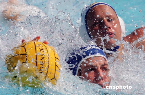 當(dāng)?shù)貢r(shí)間八月二十四日,俄羅斯女子水球隊(duì)在雅典奧運(yùn)賽場(chǎng)以十二比十一的戰(zhàn)勝匈牙利隊(duì)。中新社記者:毛建軍