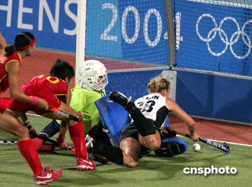 雅典當?shù)貢r間8月24日晚,奧運女子曲棍球半決賽在中國與德國隊之間舉行,中國女曲在全場占優(yōu)的形勢下有多次錯失破門良機,最終在點球大戰(zhàn)中以3比4負于德國,無緣決賽。中新社記者:任晨鳴