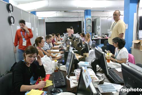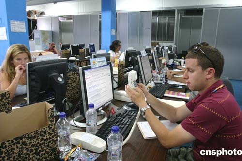 圖為NBC記者在雅典忙著轉(zhuǎn)播奧運(yùn)會(huì)比賽的場(chǎng)景。
