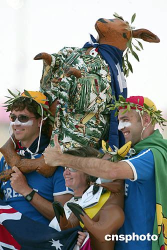圖為世界各地的人們齊聚雅典來(lái)為支持自己國(guó)家的運(yùn)動(dòng)員。