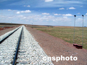 領(lǐng)銜開展青藏鐵路凍土工程科研攻關(guān)的中國科學院凍土工程國家重點實驗室提供的相關(guān)資料顯示:建設(shè)中的青藏鐵路全長一千一百四十二公里,其中新修鐵路約一千一百一十八公里,要穿越連續(xù)多年凍土區(qū)五百五十公里,不連續(xù)多年凍土區(qū)八十二公里。在這六百三十二公里凍土區(qū)當中,年均地溫高于零下一攝氏度的多年凍土區(qū)二百七十五公里,高含冰量多年凍土區(qū)二百二十一公里,兩者重疊路段約一百三十四公里。