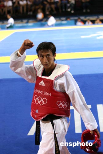 中新社雅典八月二十六日電 中國(guó)臺(tái)北選手今天在跆拳道比賽中捷報(bào)頻傳,繼陳詩欣殺入女子四十九公斤級(jí)決賽后,朱木炎又在男子五十八公斤級(jí)比賽中拿到了決賽權(quán)。