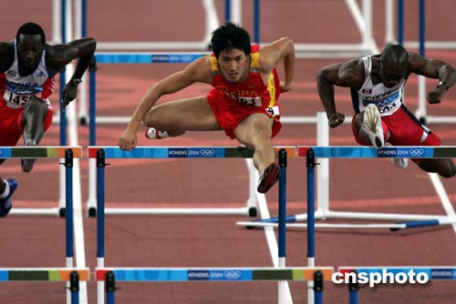 當(dāng)?shù)貢r(shí)間8月26日晚,雅典奧運(yùn)會田徑比賽繼續(xù)進(jìn)行,奪標(biāo)大熱門、中國的劉翔在110米欄半決賽中以13秒18的成績輕松晉級決賽。在參加決賽的八名選手中,劉翔的預(yù)賽成績名列第四,將在第六道參加決賽。中新社記者:任晨鳴