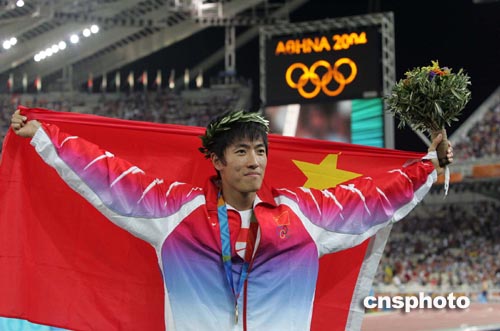 中新社雅典八月二十七日電(記者 沈晨 宋方燦)上海小將劉翔今晚在奧運會男子一百一十米欄決賽中以十二秒九一勇奪冠軍,平了該項目的世界紀錄并創(chuàng)造新的奧運會紀錄,成為首位在奧運會田徑短距離競技項目中奪冠的中國運動員。