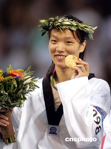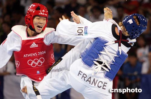 在今晚的奧運會跆拳道女子六十七公斤以上級決賽中,陳中以十二比五戰(zhàn)勝法國選手巴維爾,不僅獲得個人奧運史上的第二枚金牌,而且令中國軍團在雅典奧運會上的金牌總數(shù)鎖定在三十二枚,穩(wěn)居金牌榜次席。