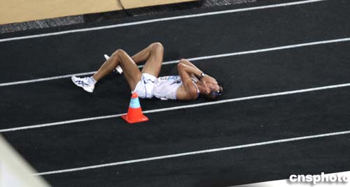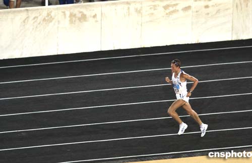 圖為在當?shù)貢r間29日進行的男子馬拉松比賽中,獲得冠軍的意大利選手巴爾蒂尼。