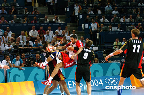 圖為在當(dāng)?shù)貢r(shí)間8月29日進(jìn)行的男子手球決賽中,克羅地亞以26比24擊敗得國獲得冠軍。