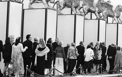 不知道從什么時候開始,歐洲電影節(jié)和罷工游行就像孿生兄弟一樣,形影不離。本屆威尼斯電影節(jié)也不能幸免。傍晚時分,在參展演員和導演下榻的威斯汀酒店外,一群統(tǒng)一著裝的人組成方隊圍在門口,他們每個人身上都掛著大紙牌,紙牌背面寫著:“威娜”危害身體健康,請禁止其生產(chǎn)。原來本屆電影節(jié)最大的贊助商之一就是世界知名美發(fā)廠商“威娜”。電影節(jié)開幕式開始,明星們走上紅地毯時,還不斷有游行隊伍在周圍逡巡,不過,盡管是游行,他們的態(tài)度卻很平和,沉默寡言,絲毫沒有影響電影節(jié)開幕式的進行。