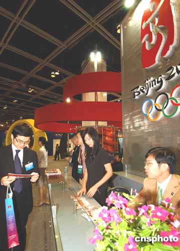 第八屆北京香港經(jīng)濟(jì)合作研討洽談會(huì)暨奧運(yùn)經(jīng)濟(jì)市場(chǎng)推介會(huì)9月2日在香港會(huì)展中心開(kāi)幕﹐北京市市委書(shū)記劉淇與市長(zhǎng)王歧山﹑全國(guó)政協(xié)副主席霍英東﹑香港特首董建華﹑香港中聯(lián)辦主任高祀仁共同打開(kāi)2008年在北京舉辦的第29屆奧林匹克運(yùn)動(dòng)會(huì)會(huì)旗。作者:趙振清