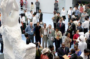 “我從來(lái)沒(méi)有見(jiàn)過(guò)這么大的雕塑主題公園,也從來(lái)沒(méi)有見(jiàn)過(guò)這么多人前來(lái)觀看有關(guān)雕塑的展覽,”來(lái)自上海閘北區(qū)實(shí)驗(yàn)中學(xué)的李道光老師說(shuō)。作為一位二十多年來(lái)專職教授陶藝的老師,他帶領(lǐng)的學(xué)生在此間同時(shí)進(jìn)行的“全國(guó)青少年環(huán)保雕塑大賽”中獲得了銀獎(jiǎng)。