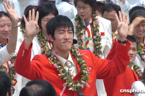 圖:劉翔在抵港歡迎儀式上