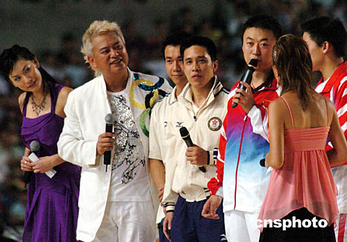 為歡迎國(guó)家?jiàn)W運(yùn)金牌代表團(tuán)訪港,九月七日香港舉行“金牌精英大匯演”,國(guó)家?jiàn)W運(yùn)金牌運(yùn)動(dòng)員與香港藝員一起為香港市民表演節(jié)目。中新社記者:錢(qián)興強(qiáng)