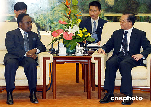 溫家寶今天下午在人民大會(huì)堂會(huì)見(jiàn)了到訪的加蓬總統(tǒng)邦戈。他高度評(píng)價(jià)中加關(guān)系,稱贊加蓬是中國(guó)在非洲的可靠朋友。他表示,中加經(jīng)貿(mào)合作已有良好的基礎(chǔ),合作前景廣闊,希望雙方進(jìn)一步挖掘潛力,提高合作規(guī)模和質(zhì)量,加強(qiáng)在經(jīng)濟(jì)技術(shù)、貿(mào)易和人才培訓(xùn)等方面的合作。