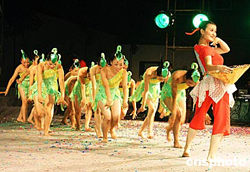 九月九日晚上,重慶市云陽新縣城云陽實(shí)驗小學(xué)大操場上,全縣教師四百六十余人出席隆重集會,慶祝第二十個教師節(jié)的到來,并與三千多市民群眾一同觀看演出,家長、學(xué)生成了晚會的忠實(shí)觀眾。圖為教師們表演的民族舞蹈。作者:饒國君