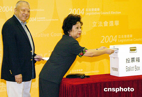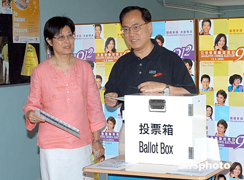 特區(qū)行政長官董建華、政務司司長曾蔭權、政制事務局局長林瑞麟、民政事務局局長何志平等政府高官今日一早紛紛到所屬選區(qū)投下莊嚴一票,以身作則一盡公民責任。