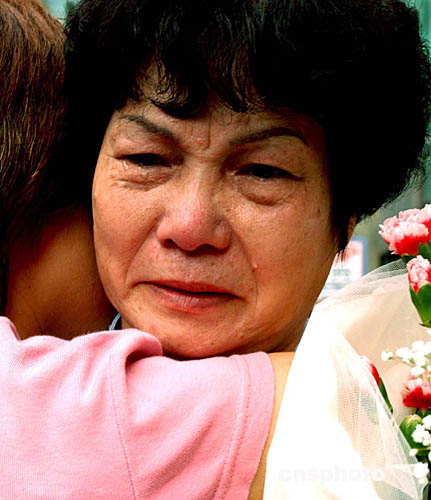 圖為曾喆的媽媽岑嬌嫻在曾喆路揭幕儀式上思念兒子淚流滿面。作者:龔文謨