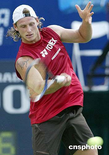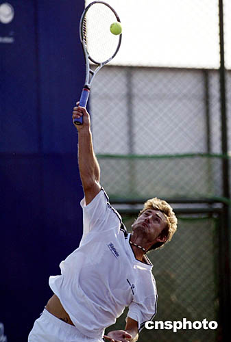 九月十二日,網(wǎng)球超級(jí)巨星費(fèi)雷羅在北京網(wǎng)球中心的外場(chǎng)進(jìn)行訓(xùn)練,為即將開(kāi)始的中國(guó)網(wǎng)球公開(kāi)賽正選賽作準(zhǔn)備。