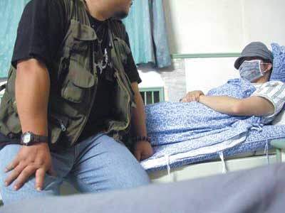 昨天,記者下午冒雨來到易茗正在治療的健宮醫(yī)院,樓道里并沒有像以往發(fā)生類似事件之后的媒體云集。在四樓骨科的“特需病房”內(nèi),記者沒有在病床上發(fā)現(xiàn)易茗本人,同病房陪床的病人家屬說易茗已經(jīng)出去了。電話聯(lián)系到易茗本人之后,對方說“要轉院,不過還要回來取東西!庇谑牵浾咴卺t(yī)院的樓道里耐心等待著。幾個小時之后,易茗才回到病房。躺在病床上的易茗,戴著帽子,帽檐壓得很低,臉上蒙著醫(yī)用口罩,只露著一雙沒神的眼睛。記者詢問他的受傷情況,他一直回避,沒有回答,但看得出他左眼像是被擊打過的樣子。