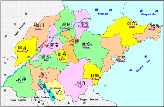 山東作為地理名稱始于戰(zhàn)國時期,當(dāng)時,泛指太行山以東的地區(qū)。山東作為政區(qū)名稱,始于金代(公元1115——1234)。元朝(公元1206——1368)置山東道,明朝(公元1368——1644)設(shè)山東布政使司,形成與今天山東省大體相同的版圖,大部分縣名沿用至今。清朝(公元1616——1911)正式設(shè)山東省,治所在濟南府。新中國成立后,經(jīng)過幾次調(diào)整,山東省形成了目前的行政區(qū)劃。山東省現(xiàn)轄17個市,139個縣、縣級市和市轄區(qū)。