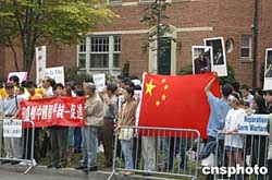 美東華人當(dāng)?shù)貢r間九月十八日在華盛頓集會示威,抗議日本不正視侵華戰(zhàn)爭罪行。作者:余東暉