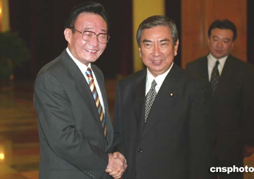 全國人大常委會委員長吳邦國九月二十日在北京會見日本眾議院議長河野洋平率領(lǐng)的日本眾議院代表團(tuán),并舉行會談。中新社記者:滿會喬