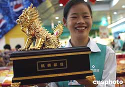 中秋佳節(jié)即將來(lái)臨,廣西南寧一商場(chǎng)推出造型優(yōu)美、中國(guó)文化味十足的“麒麟”月餅吸引顧客。中新社記者:張勤
