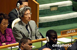 為推動(dòng)日本成為安理會(huì)常任理事國(guó)而來(lái)的日本首相小泉,今天下午在一般性辯論中發(fā)言。正如人們預(yù)料的,他直奔主題,表示日本已經(jīng)發(fā)揮的作用奠定了使它成為安理會(huì)常任理事國(guó)的基礎(chǔ)。小泉還呼吁修改《聯(lián)合國(guó)憲章》,取消其中有關(guān)日本是敵國(guó)的內(nèi)容。