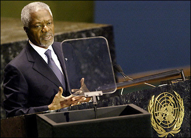 安南認為,必須讓所有國家認識到,國際法屬于它們,能保護它們的合法權益。他還強調說,只有法律,包括安理會的決議,才能為解決中東問題、伊拉克問題以及世界各地其他長期的沖突提供最佳基礎。
