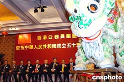 9月22日,香港公務(wù)員團體在金域假日酒店舉行慶祝中華人民共和國成立五十五周年酒會,香港特首董建華、公務(wù)員事務(wù)局局長王永平等嘉賓出席典禮。