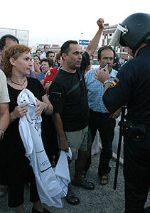 游行隊伍最初想進入位于工業(yè)城中的中國人貨倉,然而由于警察已經(jīng)在游行開始之前全面封鎖了中國人貨倉,因此這些游行群眾不得已之下又來到了埃爾切市政府門口。他們高舉標語,對埃爾切市長Diego Macià在中國鞋業(yè)問題上的軟弱表示了極大的不滿。游行群眾高呼:現(xiàn)在埃爾切制鞋工人中的失業(yè)率已經(jīng)高達30%,因此市政府應(yīng)該盡快想辦法解決來自中國鞋業(yè)的巨大沖擊。