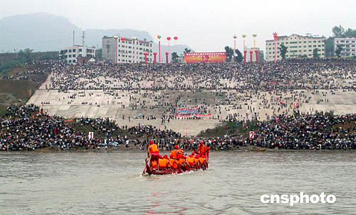 九月二十八日,三峽庫(kù)區(qū)重慶市云陽(yáng)縣舉行了“河牛杯”龍舟大賽。本次龍舟賽是三峽庫(kù)區(qū)近二十年來(lái)最大規(guī)模的一次,共有十七支隊(duì)伍參賽,吸收了近八萬(wàn)人觀看。作者:周斌