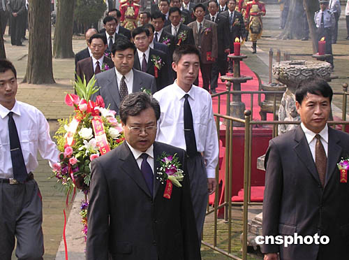 在祭祀孔子大典儀式上,曲阜市人大、市政府、市政協(xié)等敬獻(xiàn)了花籃。作者:薛紅軍