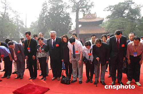 專程從海外趕來(lái)的孔子海外后裔,在大成殿前集體祭拜先祖。作者:鞠成利