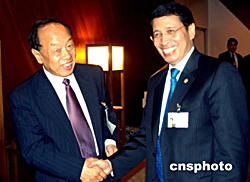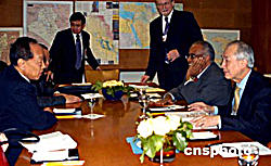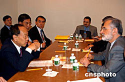 當(dāng)?shù)貢r(shí)間九月二十八日,正在紐約聯(lián)合國總部出席第五十九屆聯(lián)大的中國外長李肇星(左),會見了聯(lián)合國名人小組成員。由聯(lián)合國秘書長安南提議建立的“威脅、挑戰(zhàn)與變革”高級別名人小組,專門負(fù)責(zé)研究聯(lián)合國的改革問題,并將于年底提出報(bào)告,供會員國審議。作者:趙海燕