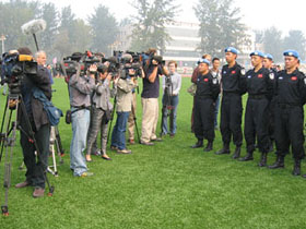 中新網(wǎng)9月29日電 據(jù)外交部官方網(wǎng)站消息,2004年9月29日,外交部外國記者新聞中心組織外國駐京記者赴河北廊坊,采訪拍攝了中國維和民事警察培訓(xùn)中心和即將赴海地執(zhí)行維和任務(wù)的中國維和防暴警察分隊(duì)。來自23個(gè)國家28家機(jī)構(gòu)的58名外國駐京記者參加了采訪。此次采訪活動(dòng)由新聞司副司長劉建超帶隊(duì)。