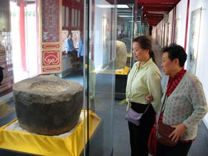 鐘表館所在的奉先殿原為皇宮內(nèi)祭祖的場所,該殿富麗堂皇,充滿了皇家氣派。該展共展出了清宮自十八世紀(jì)以來所收藏的一百七十余件上乘的鐘表作品,且多為泊來品。在三館中,最具震撼力的當(dāng)屬石鼓館。這些為秦國時期的石鼓石刻,距今有二千多年歷史,石刻文字是研究和傳遞先祖?zhèn)儦v史和文字最直接的紐帶,件件都是無價之寶。據(jù)說,抗日戰(zhàn)爭期間,為了轉(zhuǎn)運這些國寶,采用一件一車專人護運的方式使它們毫發(fā)未傷。