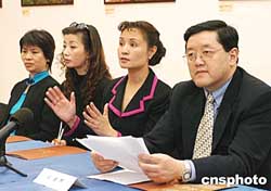 被稱為世界服裝之都的紐約,二○○四年十二月將由華人首次主辦模特選拔賽,比賽名為“美麗人生”。圖為選拔賽召集人艾冰(右二)與紐約華人總商會(huì)會(huì)長(zhǎng)劉建邦(右)等向新聞界發(fā)布消息。據(jù)悉,在世貿(mào)組織有關(guān)紡織品配額開放后,這次比賽將給新銳服裝設(shè)計(jì)師和華人服裝廠商提供施展拳腳的機(jī)會(huì)。作者:龔文謨
