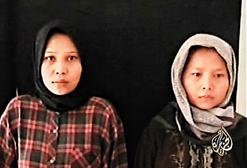 “半島”電視臺星期三播出了武裝組織綁架十名外國人質(zhì)的錄像,其中兩人是受雇于當(dāng)?shù)匾患译娮庸镜挠∧崤,分別為羅斯達(dá).賓蒂.阿南和拉菲肯.賓蒂.阿明。