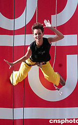 穿上時(shí)尚品牌ESPRIT 2004秋冬運(yùn)動(dòng)時(shí)裝的模特,10月4日在香港尖沙咀美麗華商場(chǎng)外墻舞臺(tái)上表演,展示優(yōu)美姿態(tài),為該品牌運(yùn)動(dòng)系列宣傳。作者:洪少葵