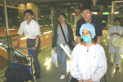 10月5日晚上8點(diǎn)半,救護(hù)車(chē)載著病人到了關(guān)西空港,趙大為領(lǐng)事和劉政領(lǐng)事親自推著輪椅向登記口走去,中國(guó)東方航空公司大阪支店長(zhǎng)黃青平得知這一情況后,立即免費(fèi)把病人安排到頭等艙,中國(guó)駐大阪總領(lǐng)事邱國(guó)洪在病人登機(jī)前通過(guò)電話向他表示了問(wèn)候,9點(diǎn)鐘飛機(jī)載著病人飛向了祖國(guó)。(記者叢中笑)