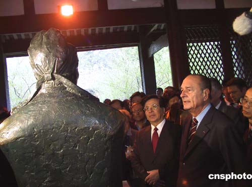 在大雅堂前,希拉克總統(tǒng)高興地題詞:“對人類最偉大的詩人致以最崇高的敬意”,以此表達(dá)自己的激動(dòng)心情。