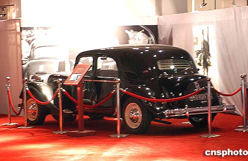 | 由中國(guó)人民外交學(xué)會(huì)、中國(guó)對(duì)外文化交流協(xié)會(huì)和法國(guó)戴高樂(lè)基金會(huì)聯(lián)合主辦的《叱吒風(fēng)云的偉人——戴高樂(lè)生平展》,將于10月10日在北京中華世紀(jì)壇隆重開(kāi)幕。這一活動(dòng)也是法蘭西共和國(guó)總統(tǒng)希拉克對(duì)中國(guó)進(jìn)行國(guó)事訪問(wèn)之際,正式拉開(kāi)帷幕的“中法文化年”——法國(guó)文化年的活動(dòng)之一。展覽主要通過(guò)圖片、視聽(tīng)手段復(fù)原戴高樂(lè)生前的生活和工作場(chǎng)景,展示戴高樂(lè)將軍的一生和他為法國(guó)所做的貢獻(xiàn)。圖為戴高樂(lè)乘坐過(guò)的汽車(chē)。作者:鄒憲