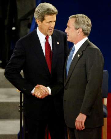 布什這次比上次表現(xiàn)好一些,對(duì)克里的批評(píng)能夠作出反擊。布什指責(zé)克里把伊拉克戰(zhàn)爭(zhēng)說(shuō)成是“在錯(cuò)誤的地點(diǎn)和錯(cuò)誤的時(shí)間打了一場(chǎng)錯(cuò)誤的戰(zhàn)爭(zhēng)”,并同時(shí)警告選民,不必指望克里當(dāng)選能促成歐洲傳統(tǒng)盟友在伊拉克問(wèn)題上與美國(guó)合作。在第一場(chǎng)辯論中,布什把這段話反復(fù)重述了好幾遍,但似乎未能達(dá)到預(yù)期的效果。針對(duì)克里指責(zé)他把圍剿拉登的部隊(duì)調(diào)去打伊拉克從而削弱了全球反恐力度,布什昨天反駁說(shuō),推翻伊拉克政權(quán)是正確的,因?yàn)榉纯植皇侵挥写驌衾沁@一個(gè)目標(biāo),反恐是全球性的。這顯然是用一種新的說(shuō)法來(lái)證明出兵伊拉克是正確的。