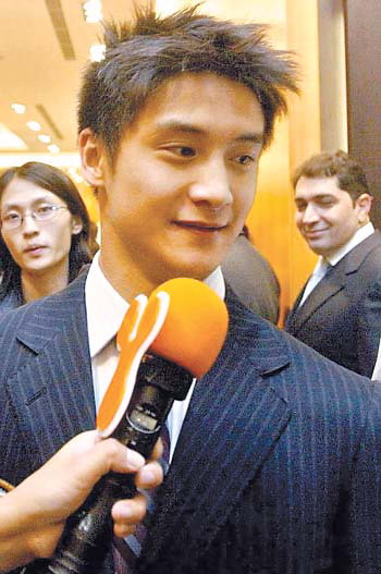 可能是因?yàn)殚L途飛行的緣故,當(dāng)晚不停周旋于各路名流之間的田亮,看起來有些力不從心。當(dāng)記者問是參加運(yùn)動(dòng)訓(xùn)練消耗體力大還是出席各種社交活動(dòng)消耗大時(shí),他很圓滑地回答道:“出席活動(dòng)很耗費(fèi)精力,不過論體力消耗當(dāng)然還是運(yùn)動(dòng)訓(xùn)練大。雖然各種社交活動(dòng)給我枯燥的跳水生涯增添了色彩,但我只把它當(dāng)作暫時(shí)的調(diào)整,春節(jié)后會(huì)投入訓(xùn)練中!碑(dāng)被問到與英皇簽約進(jìn)入娛樂圈的事情時(shí),田亮坦率地表示正在考慮中:“我愿意去試一試,嘗試一下與過去完全不同的人生滋味。不過目前只想輕松一下,簽約的問題慢慢由經(jīng)紀(jì)人洽談。”