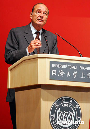 素有“中國(guó)情結(jié)”的法國(guó)總統(tǒng)希拉克今天一到上海就來(lái)到著名高等學(xué)府同濟(jì)大學(xué),向全中國(guó)青年滿(mǎn)懷感情地表達(dá)來(lái)自法國(guó)的友誼與共同接受新世紀(jì)挑戰(zhàn)的美好愿望,并接受了中國(guó)學(xué)子寓意中法友誼長(zhǎng)存的禮物。