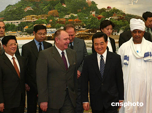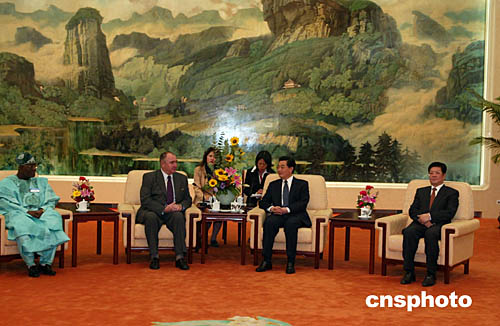 國(guó)家主席胡錦濤十月十一日在北京會(huì)見(jiàn)來(lái)華出席“經(jīng)濟(jì)全球化與工會(huì)國(guó)際論壇”的外國(guó)工會(huì)代表。全國(guó)人大常委會(huì)副委員長(zhǎng)、中華全國(guó)總工會(huì)主席王兆國(guó)也參加會(huì)見(jiàn)。中新社記者:滿會(huì)喬
