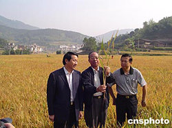 中新社尤溪十月十一日電 (陳國明黃獻光)由福建省農(nóng)科院院長謝華安主持的中國航天超級稻“Ⅱ優(yōu)航一號”再生稻十一日在福建尤溪縣通過了國家專家組的驗收,百畝連片再生稻畝產(chǎn)達五百二十一點四公斤,加上頭季畝產(chǎn)九百二十八點三公斤,全年平均畝產(chǎn)達一千四百四十九點三公斤,再次刷新世界紀錄。
